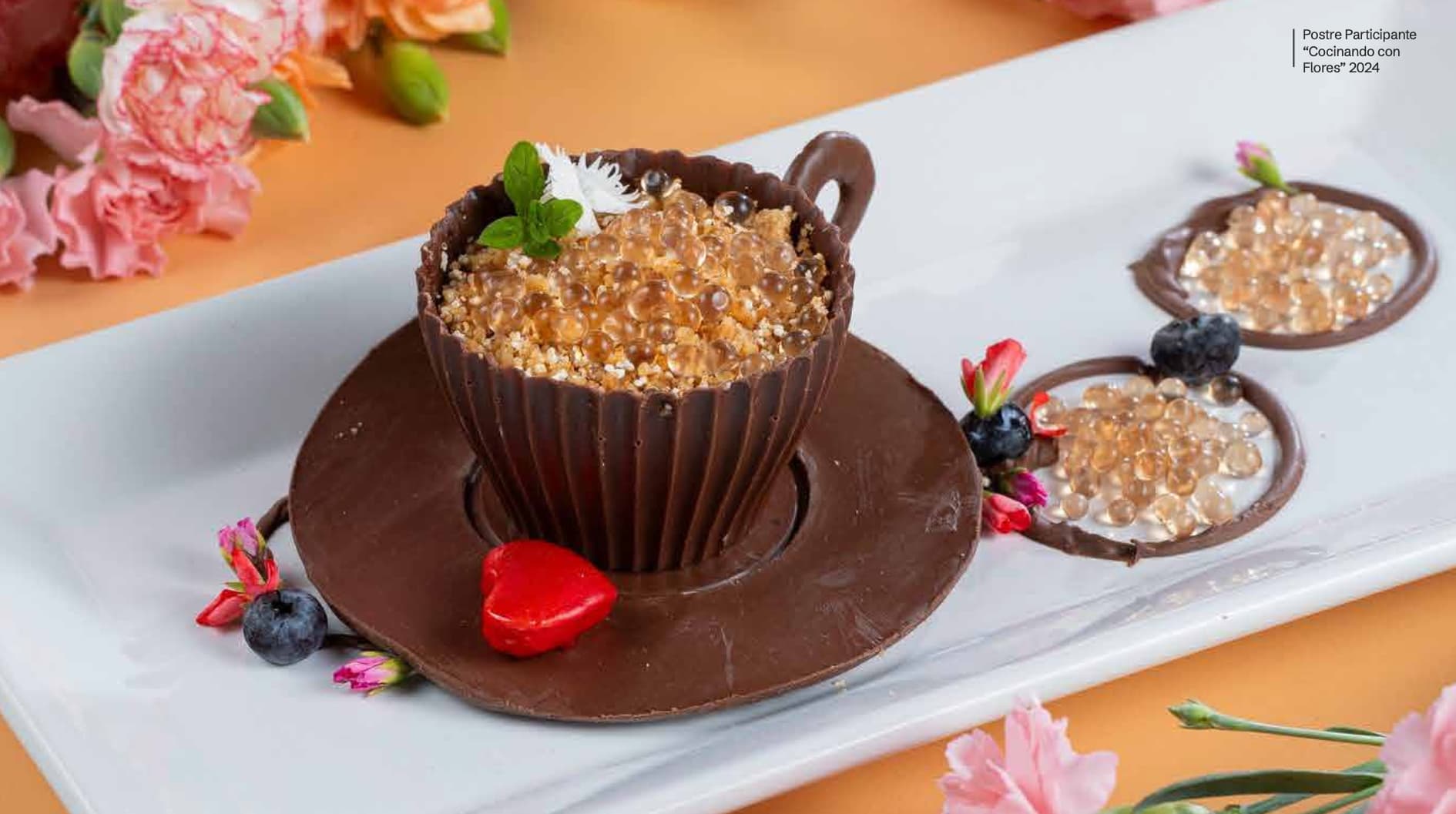 - Dos o más flores naturales comestibles (al menos 1 de ellas dentro de la preparación, la otra puede ser decorativa).